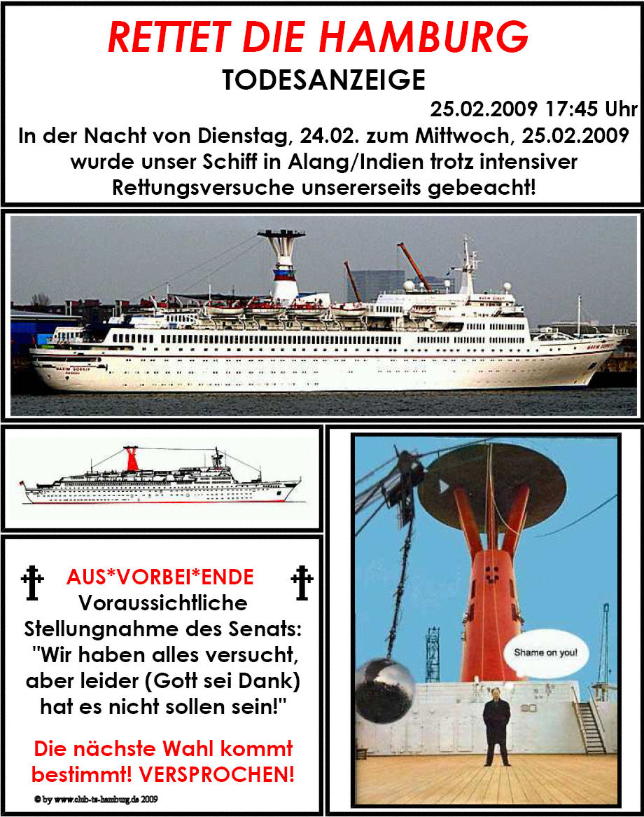 wenn die Hamburg erst einmal abgewrackt ist, könnt Ihr