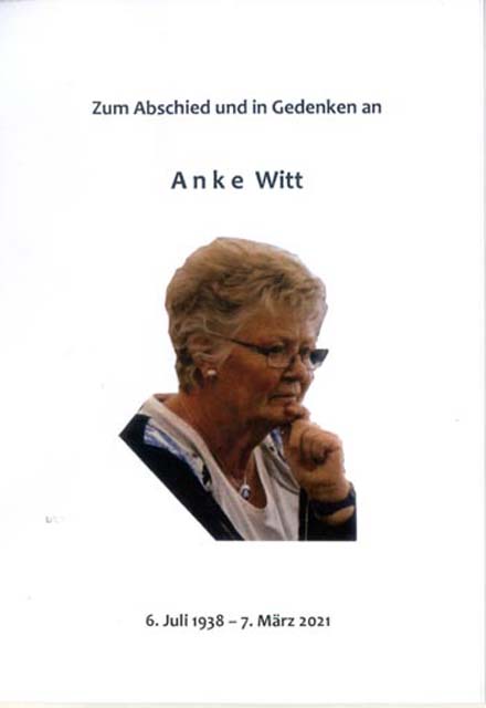 In tiefer Trauer muss ich Euch mitteilen, dass Anke Witt