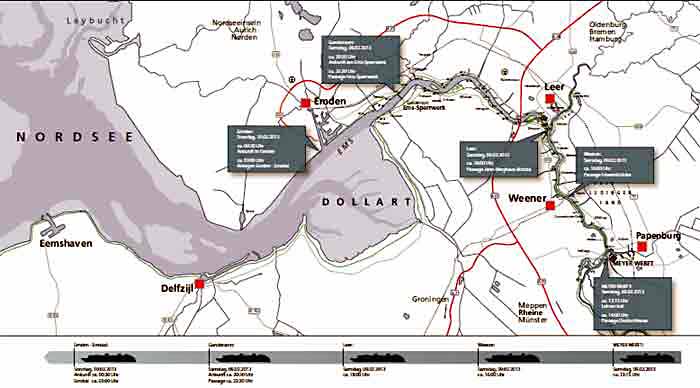 Ca. 23.30 Uhr Passieren Emssperrwerk