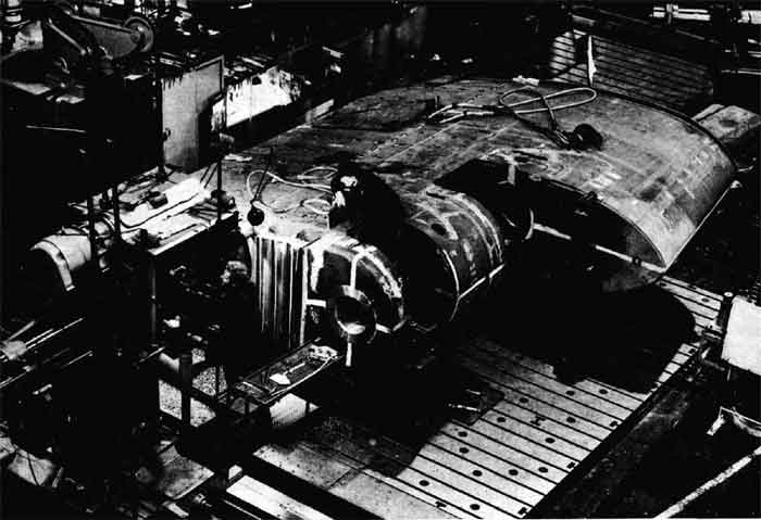 | Ruder und Ruderschaft werden fertiggemacht und in Kürze — natürlich noch vor dem Stapellauf — eingebaut. Bis dahin sind es nur noch drei Wochen.