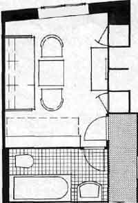 Oben: Einrichtung und Grundriß des