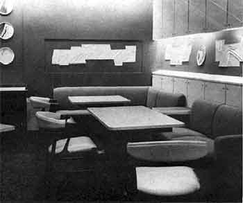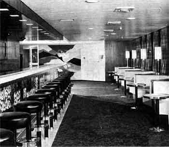 wird. Bar im Alster-CIub (Promenadendeck) mit gemütlichen Klön-Nischen. Im Hintergrund ein farbfroher, moderner französischer Gobelin.A l-Kammer, Schlafraum. |